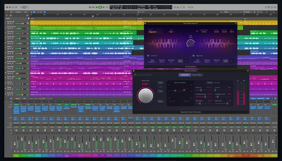 • Comprehensive mix and plug-in parameter automation can be part of a region or track