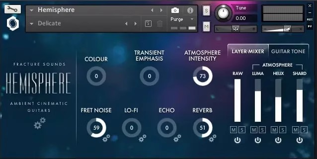 Hemisphere features two classic guitar models, deeply sampled through a range of amps and effects chains. Every note was captured with an emphasis on softness and nuance, preserving the delicate textures that make electric guitars so evocative in cinematic and atmospheric music.