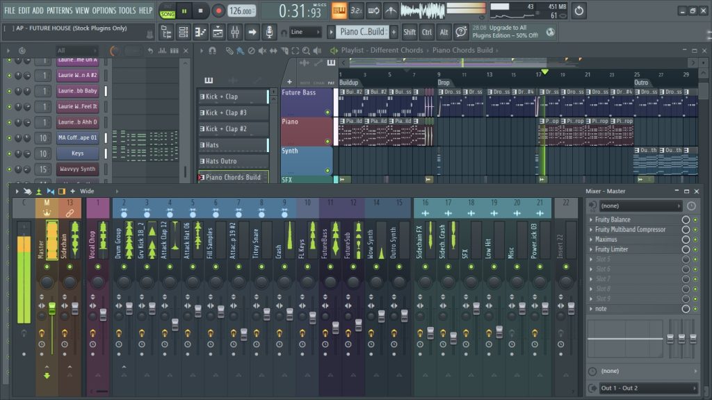 FL Studio Producer Edition includes over 80 instrument and effect plugins covering automation, sample playback/manipulation, synthesis, compression, delay, equalization filtering, flanging, phasing, chorus, reverb, distortion, bit-crushing and more. With FL Studio you will be ready to create just about any style.