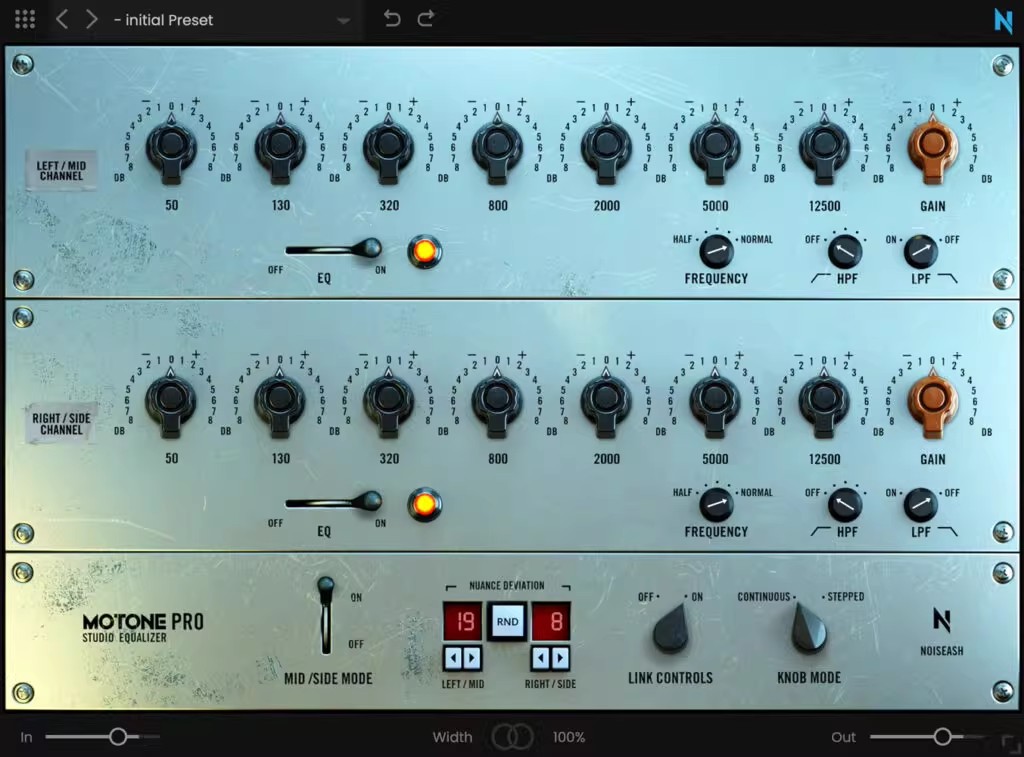 Nuance Deviation System (NDS) for individual Left/Mid and Right/Side channels (Motone Pro EQ)
