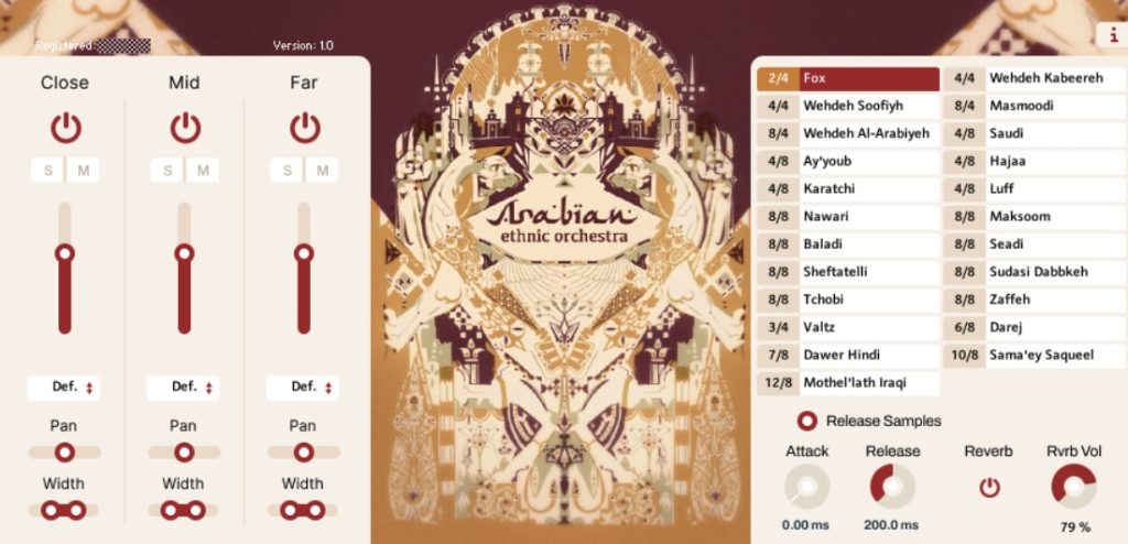 Arabian Ethnic Orchestra (or AEO) was fully recorded in Syria with the help of authentic Arabian musicians performing all of the instruments. For the ensembles (Strings, Percussion, Voice FX, etc) we used a medium-sized concert hall, and the soloists were recorded in a smaller studio. All was recorded with different microphones which we later summed into 3 microphone positions – Close, Mid, Far.